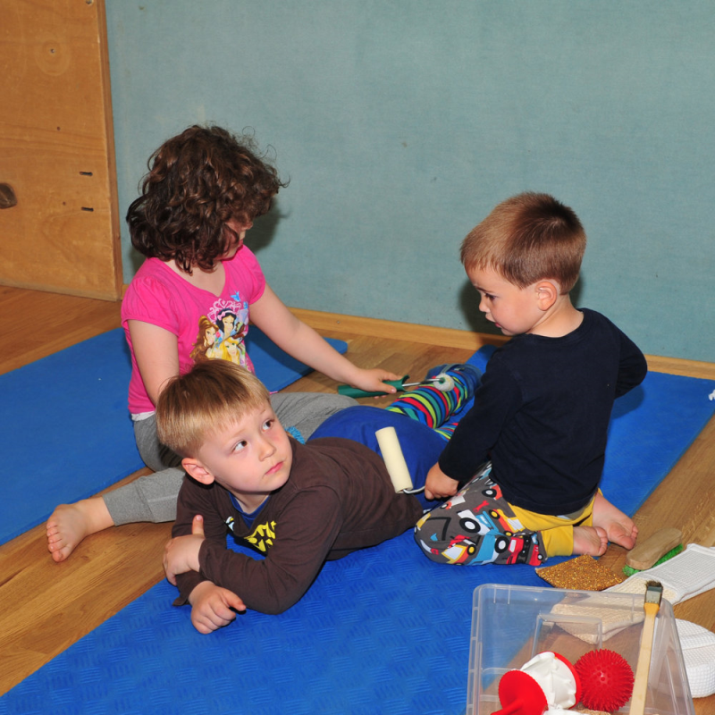 Durch kindgemäße Übungsangebote sollen Körper, Material und soziale Erfahrung gefördert werden.