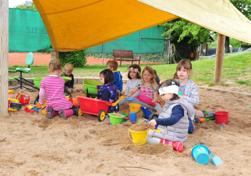 Bedenkt man, dass viele Kinder den ganzen Tag im Kindergarten verbringen, ist es am Nachmittag umso wichtiger Zeit zu haben, um auf die Wünsche und Bedürfnisse der gesamten Gruppe und auch einzelner Kinder einzugehen. Nachmittagsaktion finden je nach Wetterlage und Jahreszeit statt. Im Sommer sind wir viel in unserem Außengelände (Wasserspiele, Fahrzeuge, Streuobstwiese, Hochbeete und Tiere), im Winter benutzen wir die eigenen Räume des Kindergartens (die große Sporthalle und sämtliche Sporträume des Vereins).